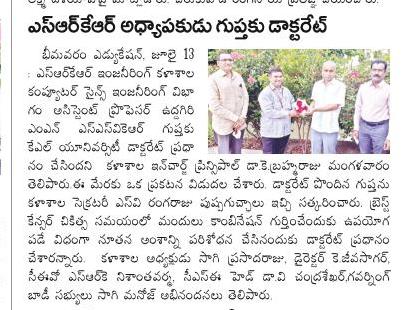 Secretary and correspondent Shri S.V. Ranga Raju garu, Principal Dr. M. Jagapathi Raju garu, ECE HOD Dr. B.V.S.S.N. Raju, other HODs and Staff congratulated him for his achievement.