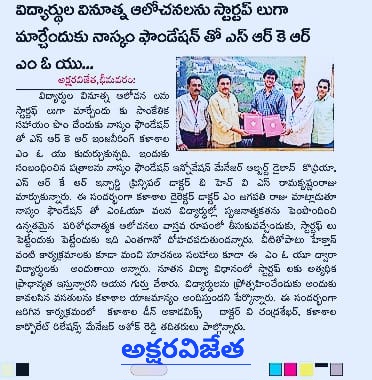 This collaboration is set to nurture a culture of innovation and entrepreneurship at SRKR Engineering College, providing students with the tools and guidance needed to succeed in their entrepreneurial endeavors.