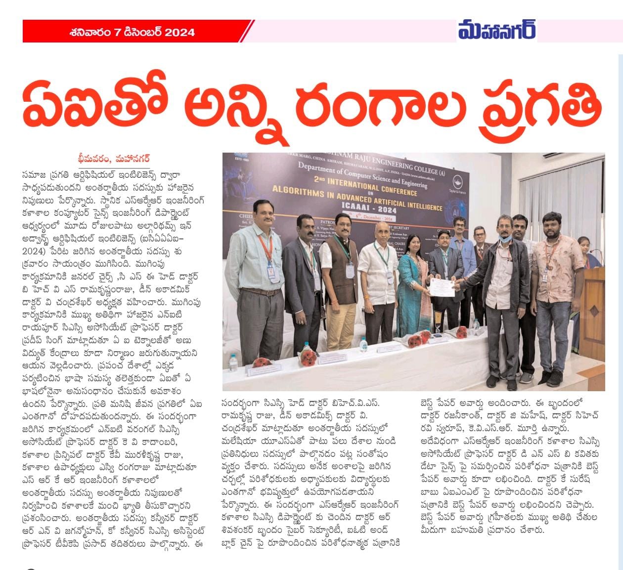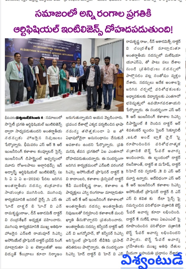 Dr. RNV Jaganmohan, Convener of the International Conference, along with Co-Convenor TVJP Prasad and other faculty members, participated in the event, which saw significant discussions and interactions on cutting-edge topics in AI. The conference proved to be highly beneficial for researchers, teachers, and students alike.