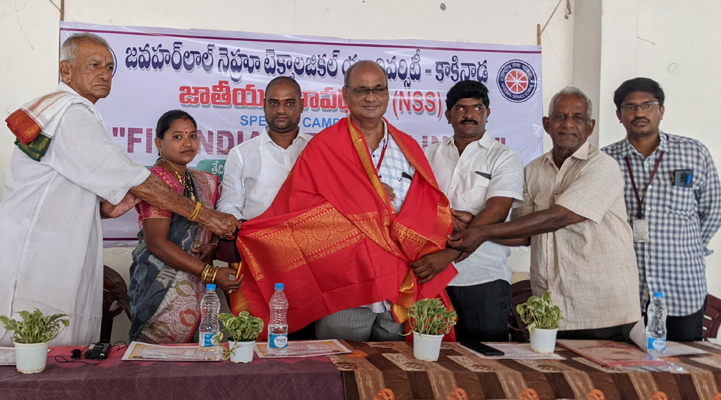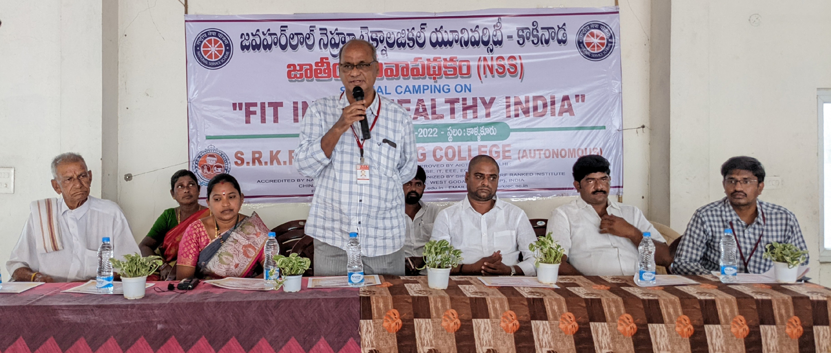 NSS camp was being organized at Kallakuru Village by SRKR students from 21-03-22. The poster relating to this was inaugurated at the campus by the Secretary and Correspondent of SRKR Engineering College Sri. S. Vital Rangaraju garu. Speaking on this occasion the Principal of SRKR Engg College Dr. M. Jagapathi Raju garu had said that the NSS unit at SRKR was recognized by the State Govt of AP. NSS Coordinator KNV Satyanarayana had said that this programme was being conducted with the slogan of 'FIT INDIA-HEALTH INDIA'. As a part of this camp various activities are being planned as below: