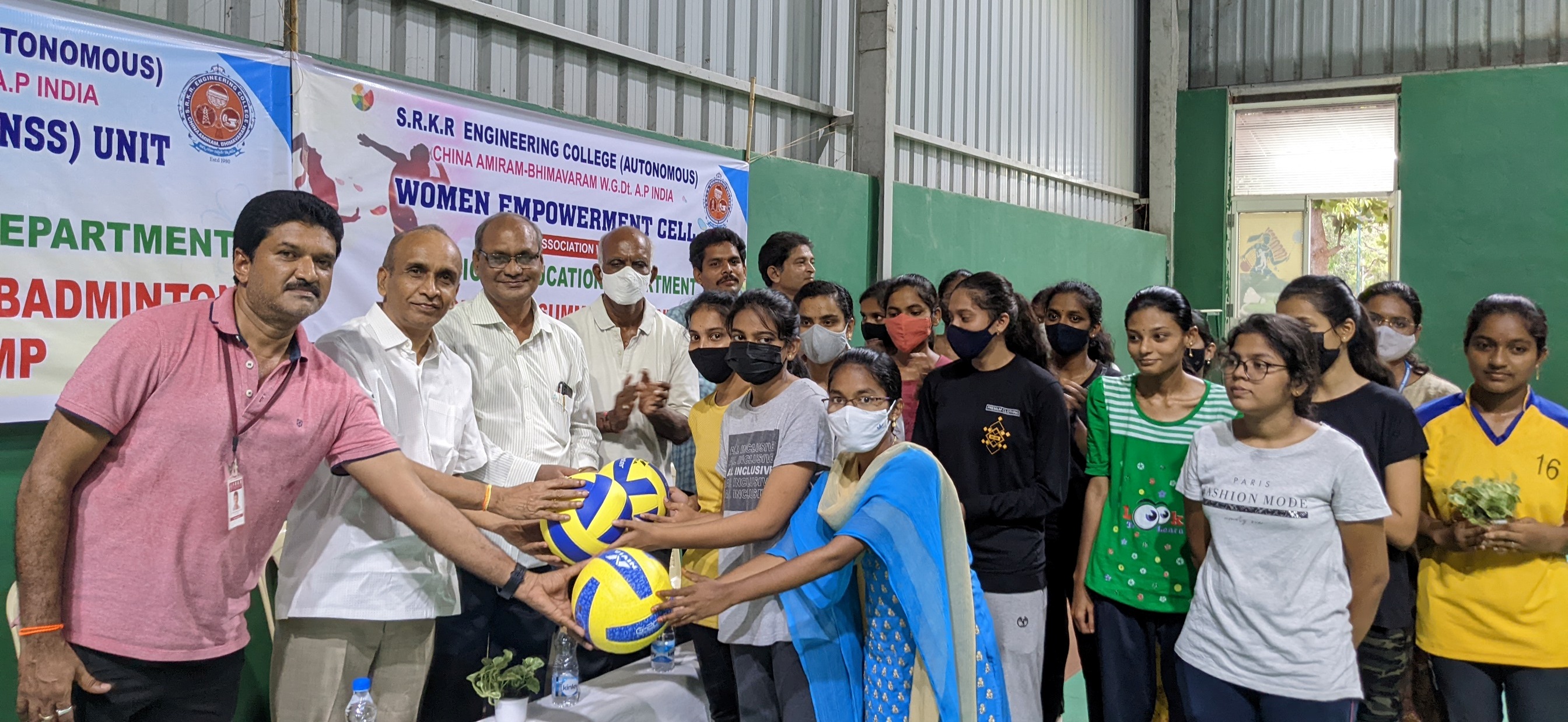 The Physical Education Department at SRKR Engg College in collaboration with NSS Unit and Women Empowerment Cell is conducting Sports Camp in Shuttle and Volley Ball for one month. This camp was being inaugurated by the Secretary and Correspondent of SRKR Engineering College Sri. SV Ranga Raju garu on 13th April at the indoor stadium of the college. Speaking on this occasion Sri SV Ranga Raju garu urged the students to give prime importance to sports too along with the academics which will play a vital role in the all round development of the students. Principal of SRKR Engineering College Dr. M. Jagapathi Raju garu had said that the students in this camp will be trained by the Volleyball Coach Mr. Ramaraju and Shuttle coach Dr. KKK Varma for a period of one month at morning and evening times. Women Empowerment Cell Coordinator Dr. P. Bhuvaneshwari, NSS Unit Coordinator Prasadraju, Physical Education Dept staff members Dr. P. Satyanarayana Raju, Dr. Harimohan and Dr. G. Sarika took part in this occasion.