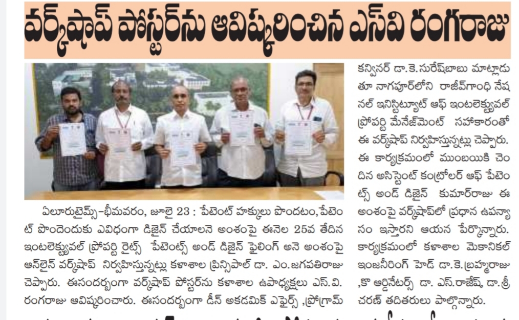 SRKR Engineering College is going to conduct an online workshop on the topic of 'Intellectual