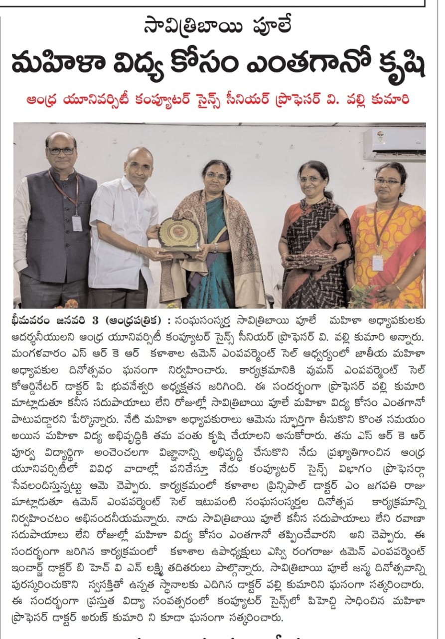 at SRKR Engg College by the Women Empowerment Cell. Andhra University Computer Science Dept