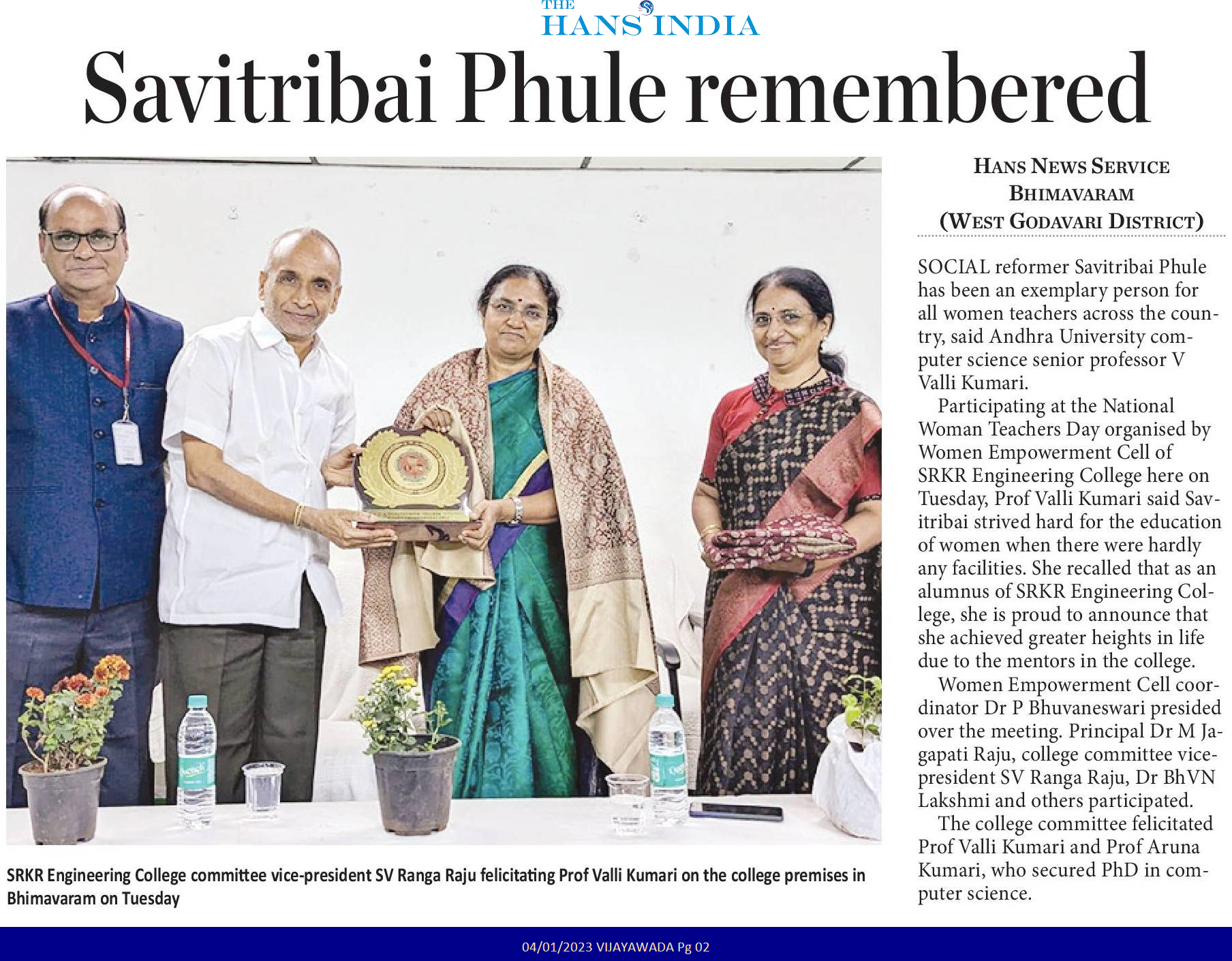 faculty should treat her as a role model. Principal of SRKR, Dr. M. Jagapathi Raju had appreciated the
