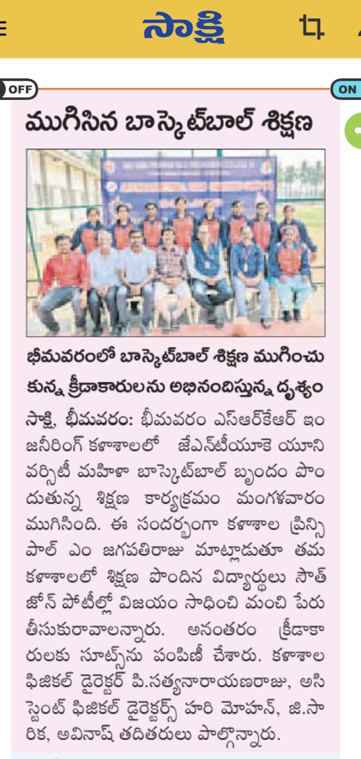 The coaching camp of JNTUK Women Basketball team players was concluded in the SRKR college on