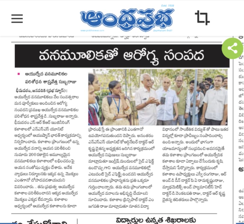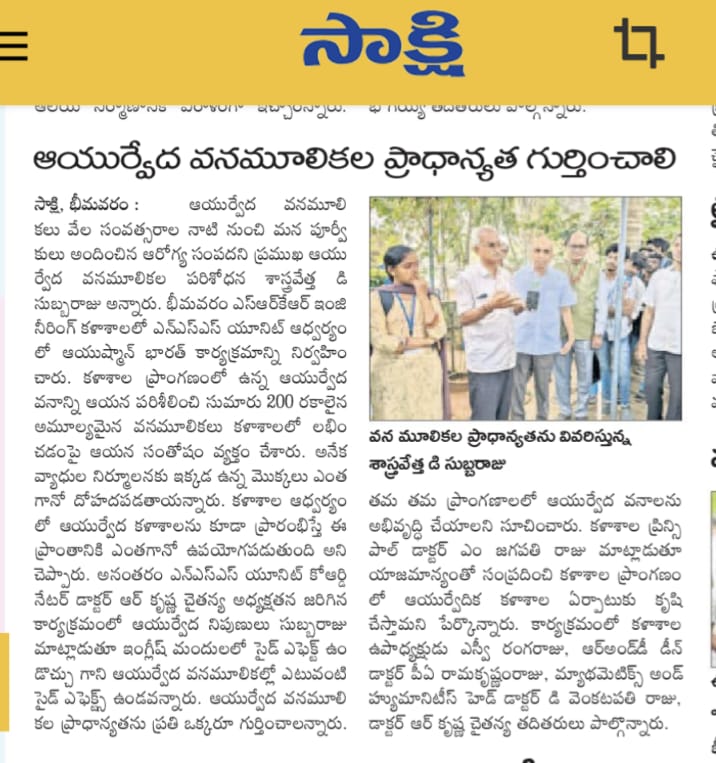 An awareness session on 'Ayurveda' was being conducted at SRKR Engg College under the Ayushman