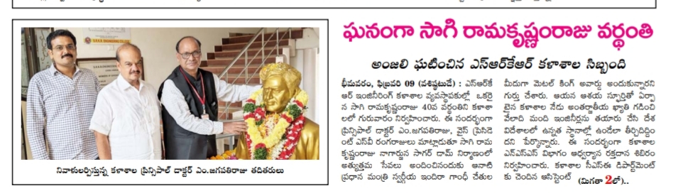 Ramakrishnam Raju garu, chief donor of SRKR Engg College. Faculty of CSE Dept Dr. K. Aruna Kumari had donated blood 5 times until now and she was appreciated for her noble task. Principal Dr. M. Jagapathi Raju and NSS Team took part in this activity.