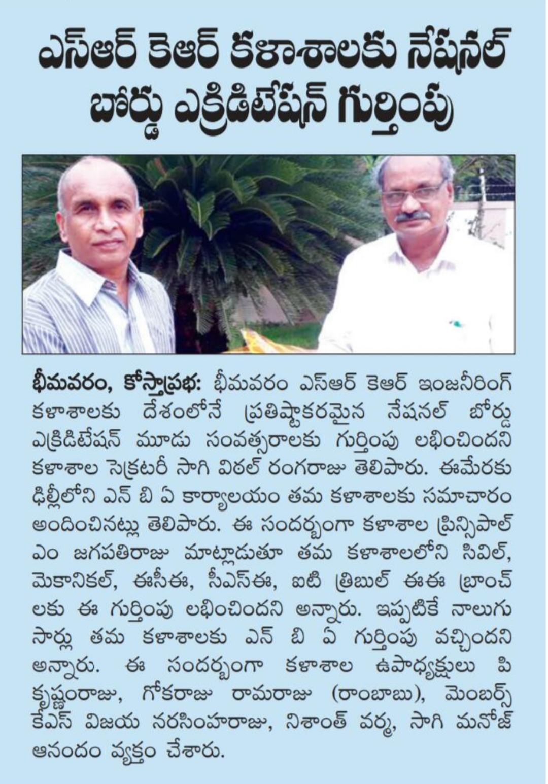 The management congratulated the principal, HODs, Teaching and Non-Teaching Staff for their efforts in getting the accreditation for all branches.